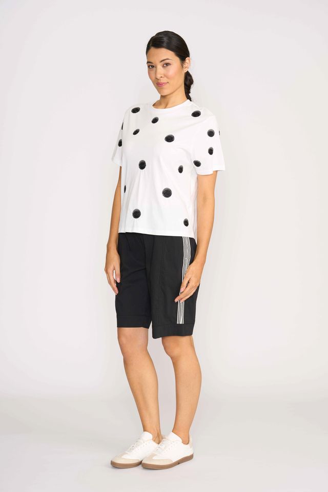 Slim leg shorts with a difference. In seam pockets for functionality and panel seams for a flattering look. Trim detail running down the side seam for a great look. Inner leg length is approx. 55cm (size 12) BATTEN 69% COTTON, 27% NYLON, 4% ELASTANE
