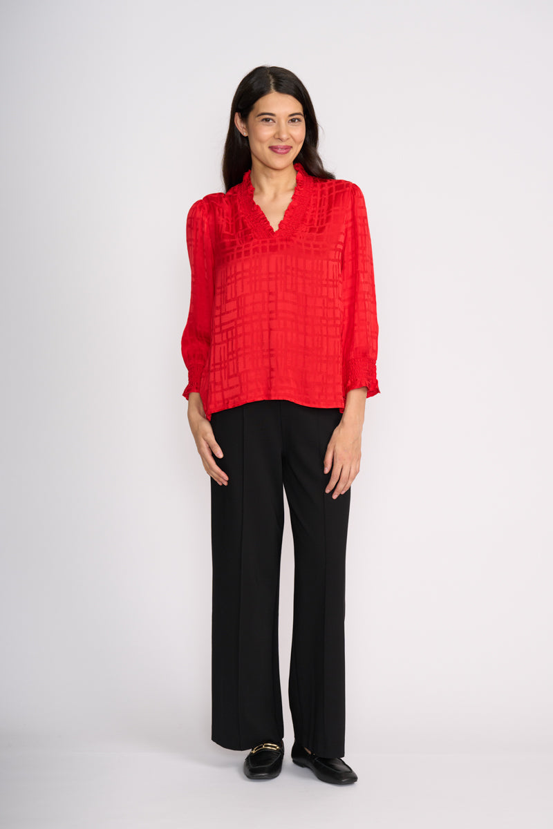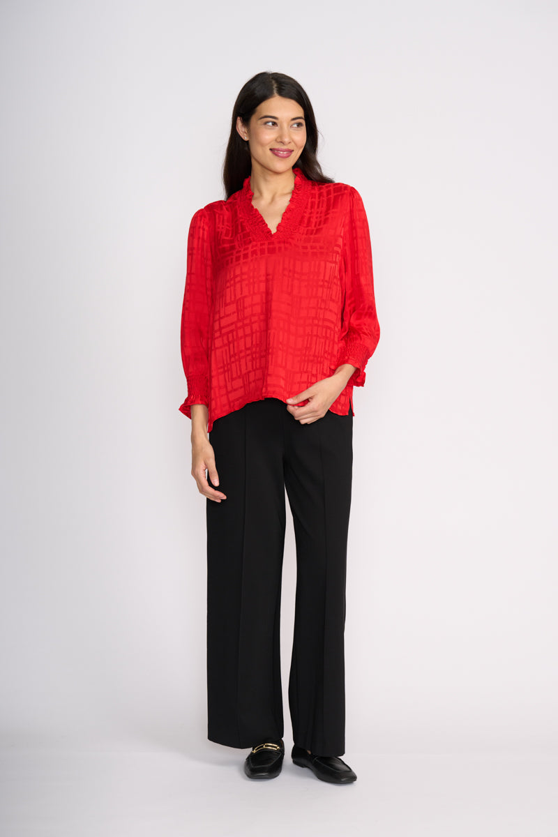| Looking for the perfect top that seamlessly blends style and comfort? This frill detail top is your answer! With a flattering V-neck, stylish scoop hem, and versatile 3/4 sleeves, it’s tailored to enhance your silhouette and provide all-day comfort. Ideal for any occasion. Body length from shoulder to hem is approximately 60cm (size 10). | TRANSSEASONAL WOVENS | 100% VISCOSE |